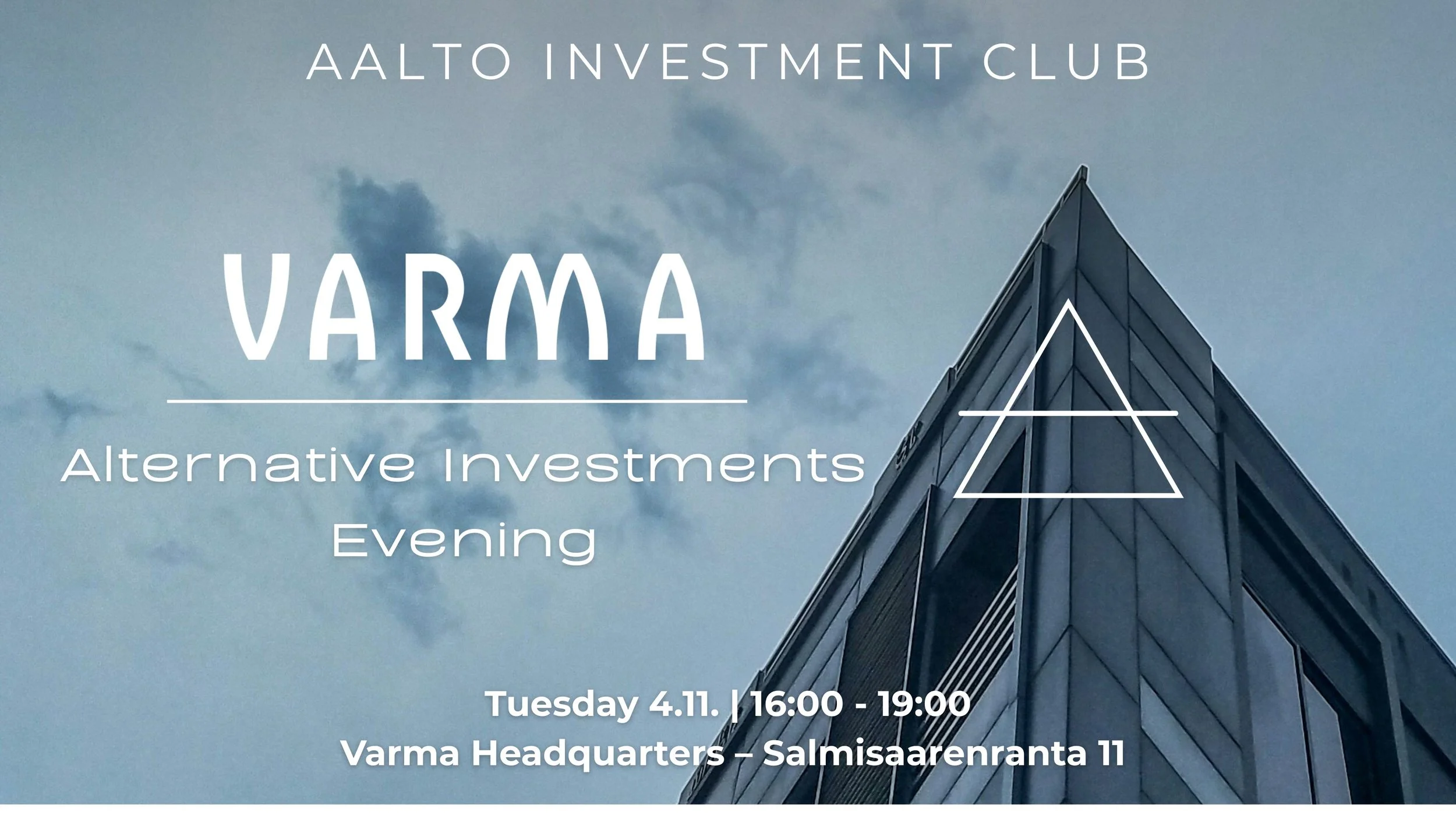 We welcome every Aalto student to learn about how institutional investors can generate a positive financial and environmental impact with our partner Varma. During the event, you will be able to hear from the top professionals, connect with like-minded people while enjoying delicious food! You also have to opportunity to ask anonymous questions from the guest speakers!